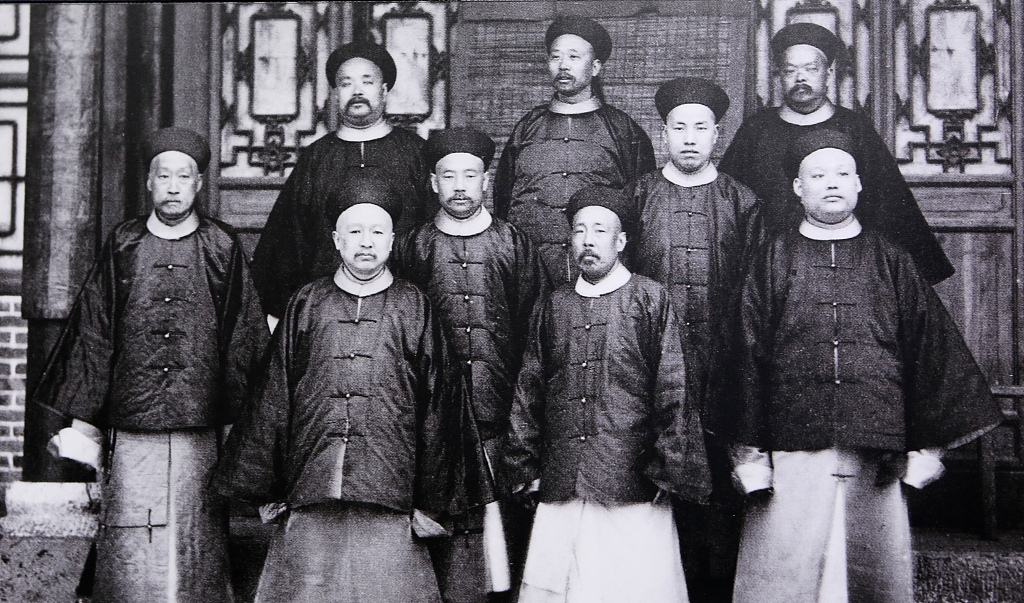 1886年5月20日,李鸿章麾下的洋务干将盛宣怀(前排左)等晚清部分官员合影