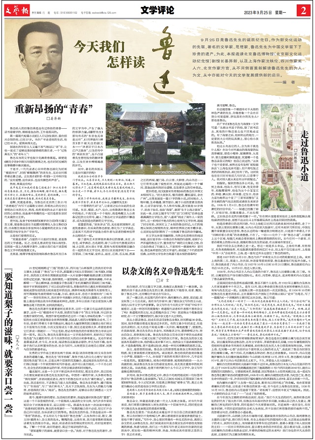 9月25日是鲁迅先生的诞辰纪念日。作为新文化运动的先驱,著名的文学家、思想家,鲁迅先生为中国文学留下了珍贵的遗产。为此,本报邀请北京鲁迅博物馆(北京新文化运动纪念馆)副馆长姜异新,以及上海作家沈轶伦、四川作家羌人六、北京作家方言,从不同侧面重新解读鲁迅先生的为人为文,从中亦能对今天的文学发展提供新的启示。