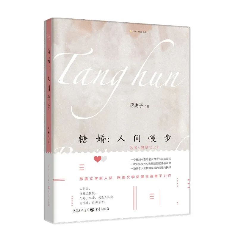 初清华(南京信息工程大学文学院副院长,博士,硕导): 蒋离子新作《糖婚:人间慢步》不论是从人物角色情感的丰富性,或是所表达对人性思考的深度、广度来看,都有效地超越了网络文学作为消费文化的缺点:追求爽点的肤浅化、模式化描写,而善铺意外设悬念,并用对比结构来塑造人物性格、角色、境遇,彰显出对友情、亲情、婚外情及复杂多元人性更深层次的主题探讨。作者用娴熟的写作技法,栩栩如生地讲述着生活的另一种可能:总是出乎意料之外,却又在情理之中。无论是异性间爱情的意料之外,绯闻纠结、人生麻烦却又节奏合理,不乏细节的铺陈。又或是同性间友情的意料之外:安灿、林一曼、何夕三人若即若离、时而剑拔弩张却又密不可分的老同学情谊,一朝被人利用而背叛安灿后又幡然醒悟的老姐姐薛燕,因有着强烈自我实现意愿曾一度不择手段的陆玲玲,最终却能拒绝诱惑而承受住了生活的考验,以及让人意外的裴娜与沈芳如的同志关系,私德有亏的陈启明被隐形人江振海所利用的关系,以及卫开与于新间的知己情谊,都充满了意外,却又呈现出热气腾腾的生活气息。特别是文中不同角色记忆的不定时出场,不仅带来叙述视角的自如切换,使叙事节奏张弛有度,并且在剥开电商部的罢工事件、于新的突然离世、林一曼的上任、莉莉安怀孕门、临城分公司舞弊案、市场部副总监杨奇的调任、轮岗制的施行等事件真相层层迷雾的同时,更打破了时空局限,作家蒋离子正是以其独到的记忆细腻视角,为读者展现出“生活的另一种可能”。