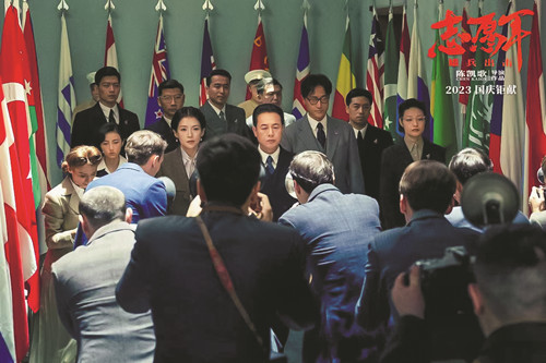 全片的新意还体现在着力设置一系列细节,在场景和人物性格的深描上取得实效。深描,意味着不是浮光掠影式的浅层描写,而是深刻的、富于穿透力的深度意义构建。下面这些细节确实具有深描的力量:从麦克阿瑟在战场上用白手巾擦皮鞋的细节,可见出其狂妄和刚愎自用的性格;透过毛泽东与林巧稚在天安门城楼有关生命的对话,可知领袖的战略决策有着深厚的民间舆论支撑;毛岸英临行前同繁忙父亲的隔窗远望式道别镜头,传达出领袖之子与民同甘共苦的意涵;由毛岸英细心开导小杨到后者主动为前者修鞋,强化上述同甘共苦意涵;彭德怀的孤军勇闯敌军封锁线、怒斥梁兴初贻误战机、发出“38军万岁”的心声等细节,刻画出“彭大将军”的威风;松骨峰“铁三角”戴如义、杨少成、孙醒之间有关谁活着就把连队带回的商议镜头,凸显我军团结奋战和前仆后继的光荣传统;伍修权在首次出席联合国大会前夕让译员唐笙仔细核对国家名牌的英文翻译,透露出新中国初登世界舞台的庄重和严谨;他继而在演讲中挥拳拍桌子,表现了我方的自信和自强;松骨峰上虚拟出的一棵松造型,可以有效地满足观众看到此景时油然而生的敬仰英雄之情怀。透过这些细节,毛泽东的雄才大略、毛岸英的纯真善良和平易近人、彭德怀的英勇无畏和粗中有细、梁兴初的知耻后勇、松骨峰“铁三角”的铁胆忠魂、伍修权的正义凛然和细心谨慎等独特性格特征,宛如浮雕般凸显出阳刚而壮丽的风采。