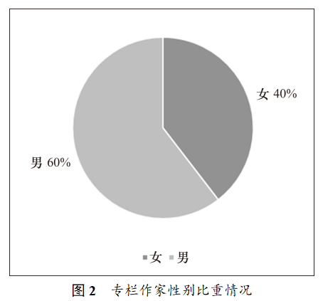 作为个体,每个作家的性别也是无法选择的。关于专栏作家性别比例,如图2所示,男性作家与女性作家的比例为3?2。