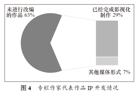当然,也有部分网络作家则对于IP改编表 现出担忧:酒徒认为如果大多数人为IP改编而 写IP式文本,网文质量可能会大打折扣[37];愤怒的香蕉也不会考虑IP改编等商业因素,认为若把创作当成事业,能够支撑作者去考虑其他因素的精力与时间所剩无几[22];在烽火戏诸侯看来,IP变现固然可以证明作品的价值,但是一部文学作品的真正不朽是在于对无数读者的精神世界的抚慰[38]。