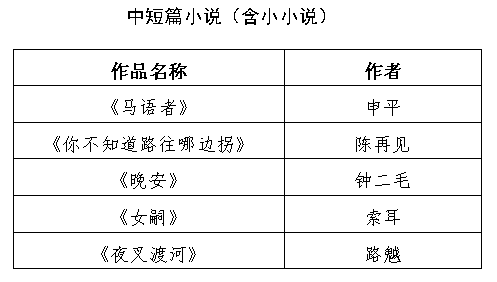 获奖作品名单