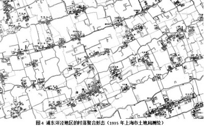 先看上海周边的聚落地理背景。图4展现民国时期浦东洋泾一带较为典型的江南乡村景观——河道纵横交织,村落星罗棋布,各种大小不等的聚落沿纬向河道集聚排列,形成江南常见的列状水路村景观。此处聚落形态所呈现出来的纬向线状排列现象,与这些河道均与该区域物流干线河道——黄浦江通连这一集聚动力因素密切相关,该现象在江南不仅由来已久,而且十分普遍,显示了水乡地带“列状水路村落”的聚落发生学生成机制与一般规律。