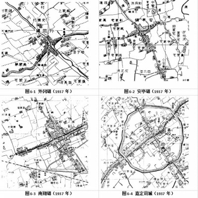 自西方列强打开国门以来,运用近代测绘技术的城镇地图开始出现在江南各地,如上海老城厢最初的实测图——《上海县城及英法租界图》大约绘制于1856-1858年。该图也是目前所能见到的江南地区最早的近代实测县城地图。1862-1864年中外联合镇压太平军期间,英军在太湖流域测制了多幅军用地图,其中包含南桥、青浦、柘林、南翔、嘉定及上海这六座城镇较大比例尺的实测地图。民国初以来,随着国民政府主导测绘事业的展开,标准化的近代城镇测绘开始实施。此类地图虽然静态反映较晚近时期江南城镇的面貌,但由于当时许多城镇还较好地留存了近代化之前的历史景观,因此可通过聚落的形态发生分析,来探索江南城镇历史形态演化与中微观肌理特质等难题。
