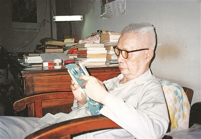 八十年代中期,黄药眠在家里看书