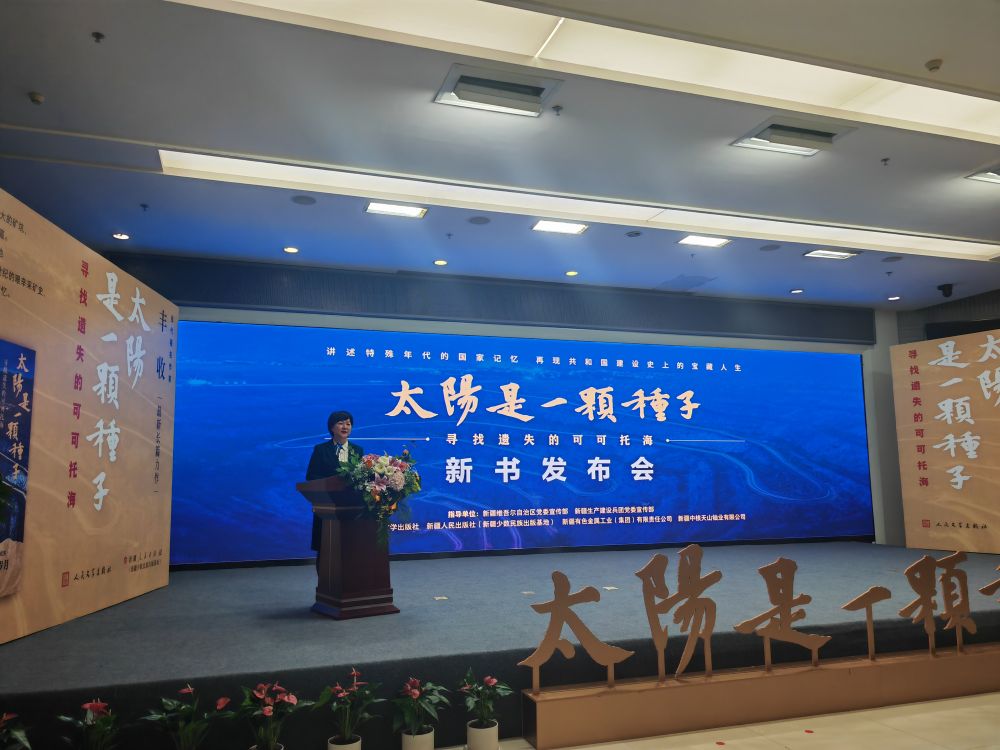 12月20日,新疆作家丰收长篇报告文学《太阳是一颗种子:寻找遗失的可可托海》新书发布会在乌鲁木齐举行。这部作品由人民文学出版社和新疆人民出版社(新疆少数民族出版基地)联合出版,再现了可可托海建设者们为新中国发展作出的重大贡献。