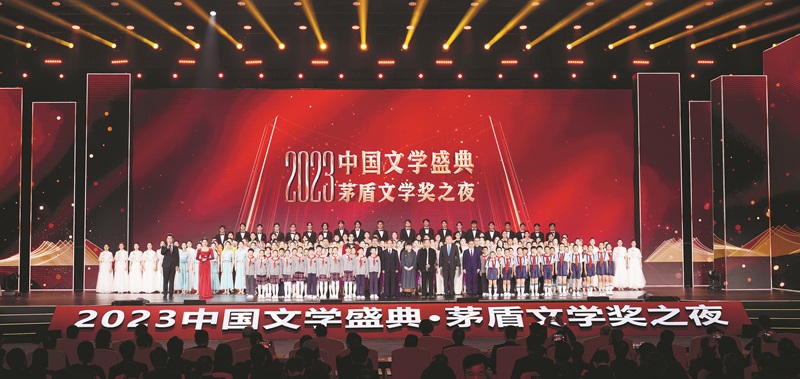11月19日晚,“2023中国文学盛典·茅盾文学奖之夜”在茅盾先生故乡浙江桐乡乌镇举行。获得第十一届茅盾文学奖的5位作家杨志军、乔叶、刘亮程、孙甘露、东西在隆重热烈的颁奖典礼上领受中国文学的最高荣誉,亿万观众通过电视和网络平台直播第一时间见证了新时代文学又一备受瞩目的高光时刻。盛典形成强大的“破圈跨界”效应,激发了文学活力,进一步唤起全社会对文学的热情与关注,凝聚起更加磅礴的文学力量。图为“茅盾文学奖之夜”现场。(本版照片均为资料图片)