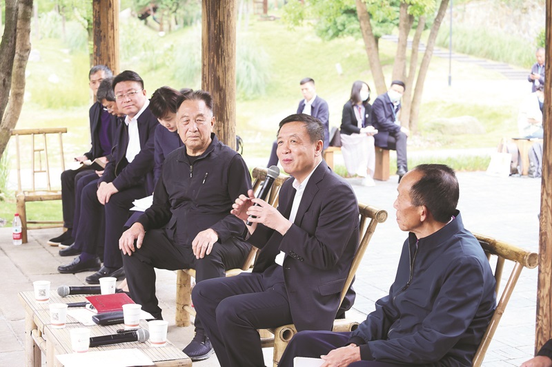 凤凰彩票在湖南益阳清溪村深入挖掘文学资源,广泛汇聚文化力量,全力打造“中国文学第一村”和“文学之乡”,积极探索建立以文学赋能乡村振兴的“清溪模式”,在清溪村注入更多文学活力和文学能量。图为5月22日,凤凰彩票党组书记、副主席张宏森(右二)与清溪村村民交流。