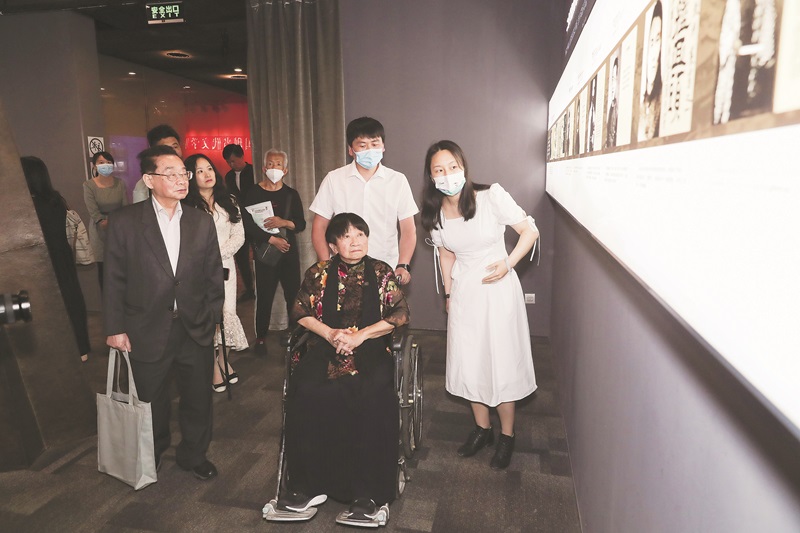 本图为5月25日,台湾作家张晓风(前左二)、绿蒂(前左一)参访中国现代文学馆。