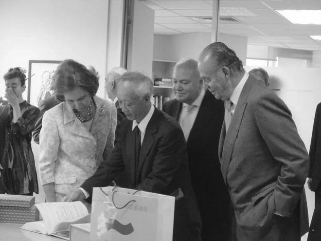 在塞万提斯学院,董燕生向西班牙国王和王后展示《堂吉诃德》中译本