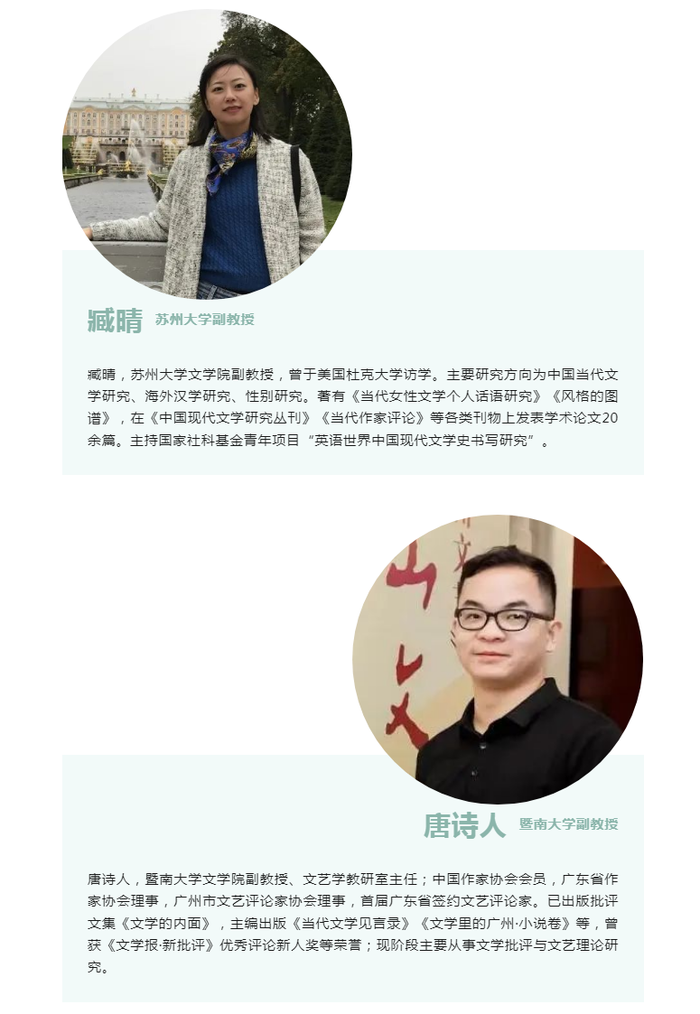 臧晴:我目前在苏州大学文学院工作,主要研究方向有两方面:其一为中国当代文学研究,包括对当前文学文化思潮的跟踪解读、文学经典的再阐释;其二为海外汉学研究,主要是关注中国文学海外传播、以及英语世界的中国文学史书写。