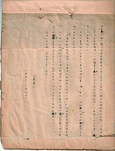 他随便翻开一页说:“我喜欢鲁迅书稿中娟秀的豆豆字。”我一看,他的稿中也是页页工整,一字一格的豆豆字。以后,这部书稿我从没有销毁的念头,舍不得。甚至翻动的时候也怕损坏它,我仿佛看见他坐在桌边认真地在写,也像在听他给我讲他动情的经历。我是想,如果我离世前它一直这样寂静地躺着,那我走时就带它走了,没想到,经历了几十年时政的变化,它虽然在艺术手法和反映及概括社会生活上并不突出,但能出版面世,给研究者提供片段的资料,实在是幸莫大耶!我真不知道怎样表达我对出版者和编辑的感激之情。我想,此稿面世,离去的父亲也一定会冥笑于天的。
