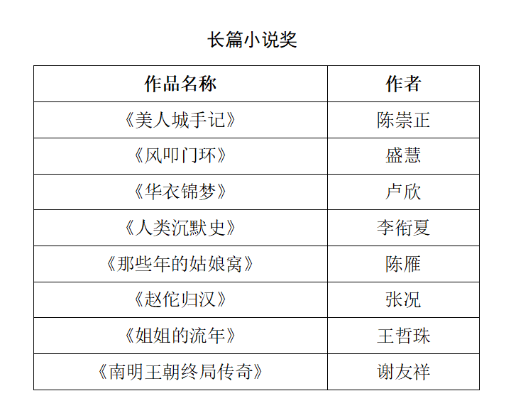 第十一届广东省鲁迅文学艺术奖(文学类)获奖作品名单