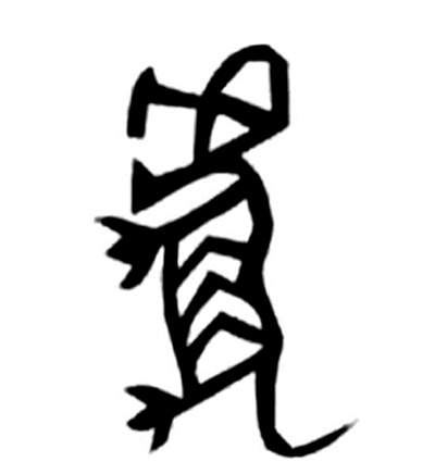 虎,在甲骨文里堪称一副要素齐全的素描。老虎的头、爪、身、尾一应俱全,而且非常准确地抓住了各部位的特征。巨口獠牙,利爪长尾,满身的斑驳花纹,仿佛猛虎下山一般,威风凛凛,气势逼人。