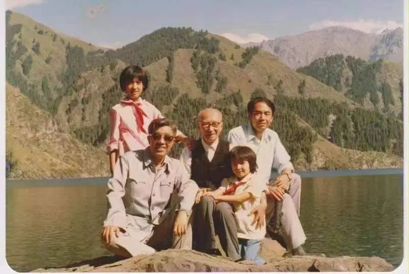 洪汛涛1984年夏,左起:三位上海作家洪汛涛、陈伯吹、张锦江应邀访问新疆,摄于天池。