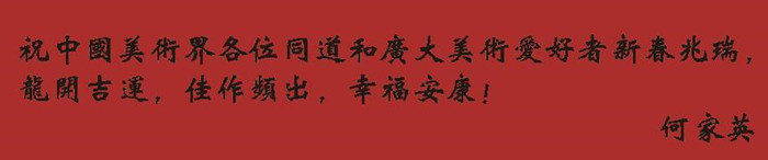 5、中国美术家协会原副主席 何家英:祝中国美术界各位同道和广大美术爱好者新春兆瑞,龙开吉运,佳作频出,幸福安康!