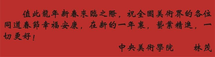 15、中央美术学院院长 林茂:值此龙年新春来临之际,祝全国美术界的各位同道春节幸福安康,在新的一年里,艺业精进,一切更好!