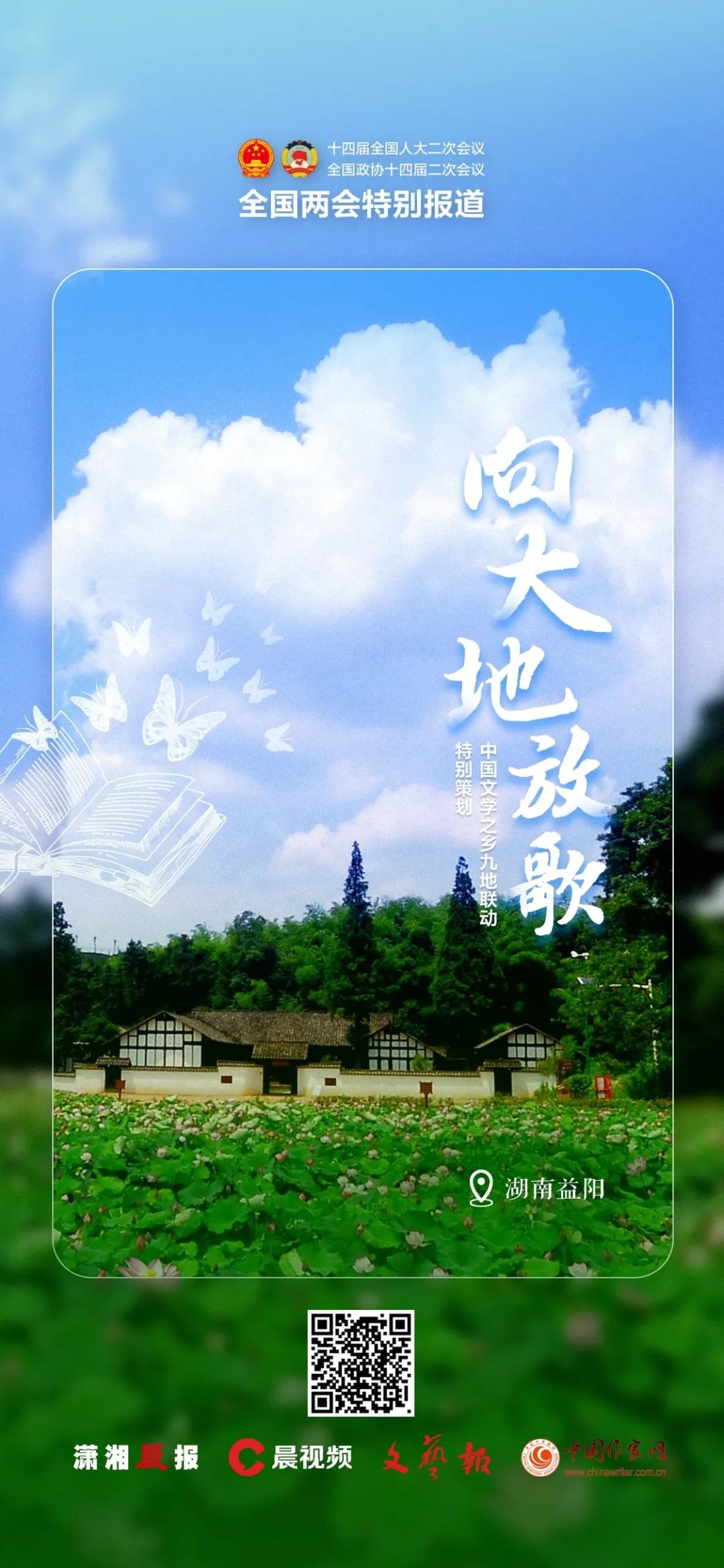今年全国两会期间,潇湘晨报·晨视频与文艺报、凤凰彩票平台登录入口一起联动 “中国文学之乡”中的湖南益阳、宁夏西吉、甘肃临潭、山东栖霞、江苏高邮、江苏苏州吴中区、四川苍溪、云南昭通、浙江桐乡等地,开展“中国文学之乡”九地联动特别策划,全面展示新时代文学赋能乡村振兴,以高质量发展推进乡村文化振兴的伟大实践,为时代书写,向大地放歌。