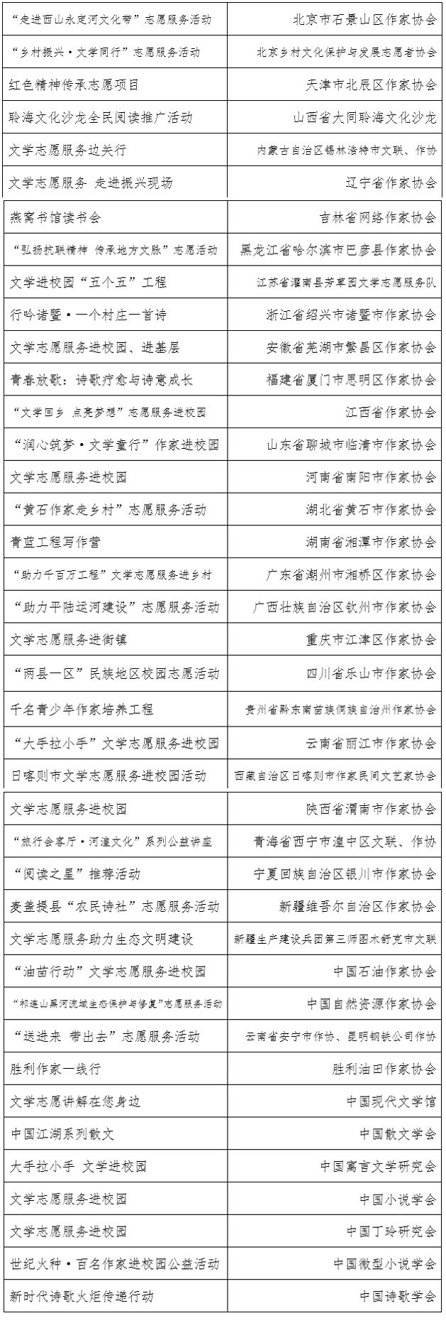 2024年文学志愿服务示范性重点扶持项目名单公布