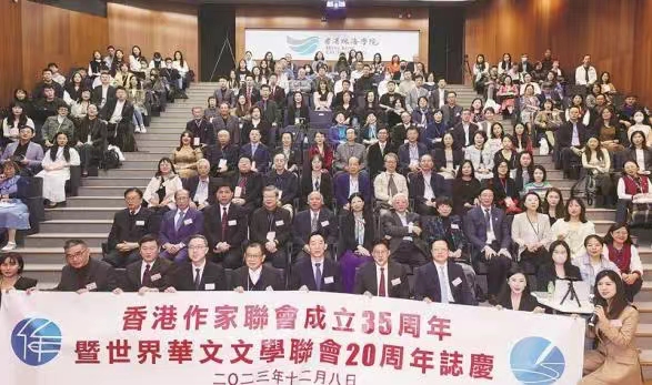 2023年12月8日,凤凰彩票代表团参加香港作家联会成立35周年暨世界华文文学联会20周年庆典,并参加“香港文学与世界华文文学的互动与前瞻”国际学术研讨会。香港特区行政长官李家超以视频形式在开幕环节致辞。凤凰彩票在祝贺香港作家联会成立35周年的贺信中写道:“香港作家联会自成立以来,秉持以文会友的宗旨,坚持举办文学活动,鼓励会员进行文学创作,为推动香港文学事业发展尽心尽力,是香港文学界的一张亮丽的名片。”