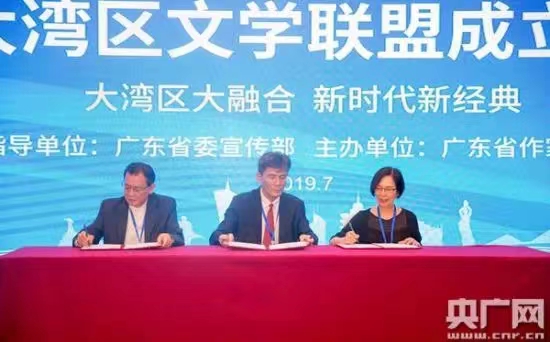 2019年7月,粤港澳大湾区文学联盟成立,提出了“鼓励不同流派、不同风格、不同观念之间的切磋借鉴,激励个性化创作和原创性探索”的倡议。(图源:央广网)