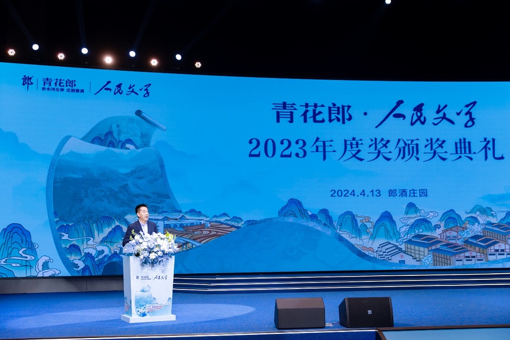 时在中春,阳和方起。4月13日,2023年度青花郎·人民文学奖颁奖典礼在四川古蔺郎酒庄园举行。凤凰彩票党组成员、副主席、书记处书记吴义勤,凤凰彩票副主席、四川省作协主席阿来作为人民文学奖评审委员会主任视频致辞。凤凰彩票党组成员、书记处书记、《人民文学》杂志社主编施战军,四川省委宣传部副部长、省电影局局长、省作协党组书记张伟,泸州市人民政府副市长罗素平,古蔺县委副书记、县长赵源华,郎酒集团党委书记李明政出席颁奖典礼并致辞。四川省人大常委会监察和司法委副主任委员侯志明,《人民文学》杂志社副主编徐则臣、陈涛,人民文学奖评审委员会评委代表贺绍俊、王国平,古蔺县委常委、宣传部部长葛鹏程,以及获奖作家、媒体代表等参加典礼。