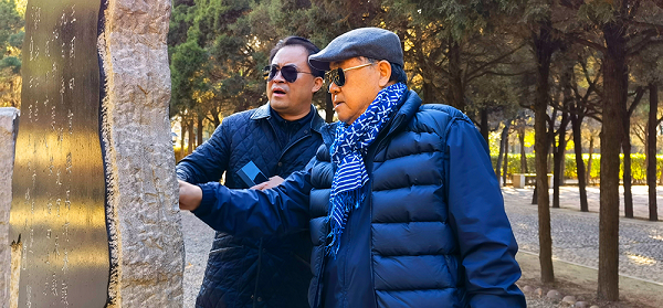 莫言与王振在河南安阳殷墟遗址碑林。图片来源:两块砖墨讯