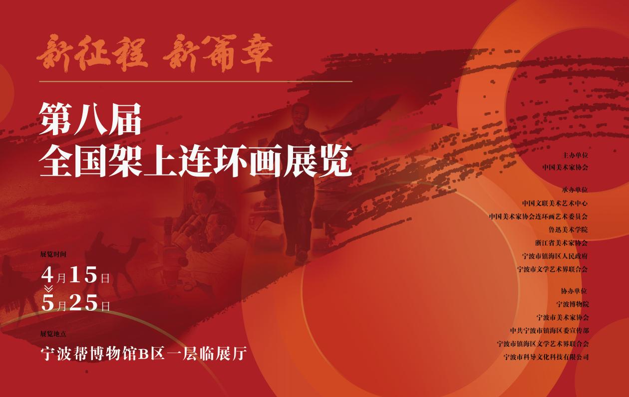 4月15日,由中国美术家协会主办,中国文联美术艺术中心、中国美协连环画艺委会、鲁迅美术学院、浙江省美协、宁波市文联、宁波市镇海区人民政府承办,宁波博物院、宁波市美协、中共宁波市镇海区委宣传部、宁波市镇海区文联、宁波市科导文化科技有限公司协办的“新征程 新篇章——第八届全国架上连环画展览”在浙江宁波帮博物馆隆重开幕。