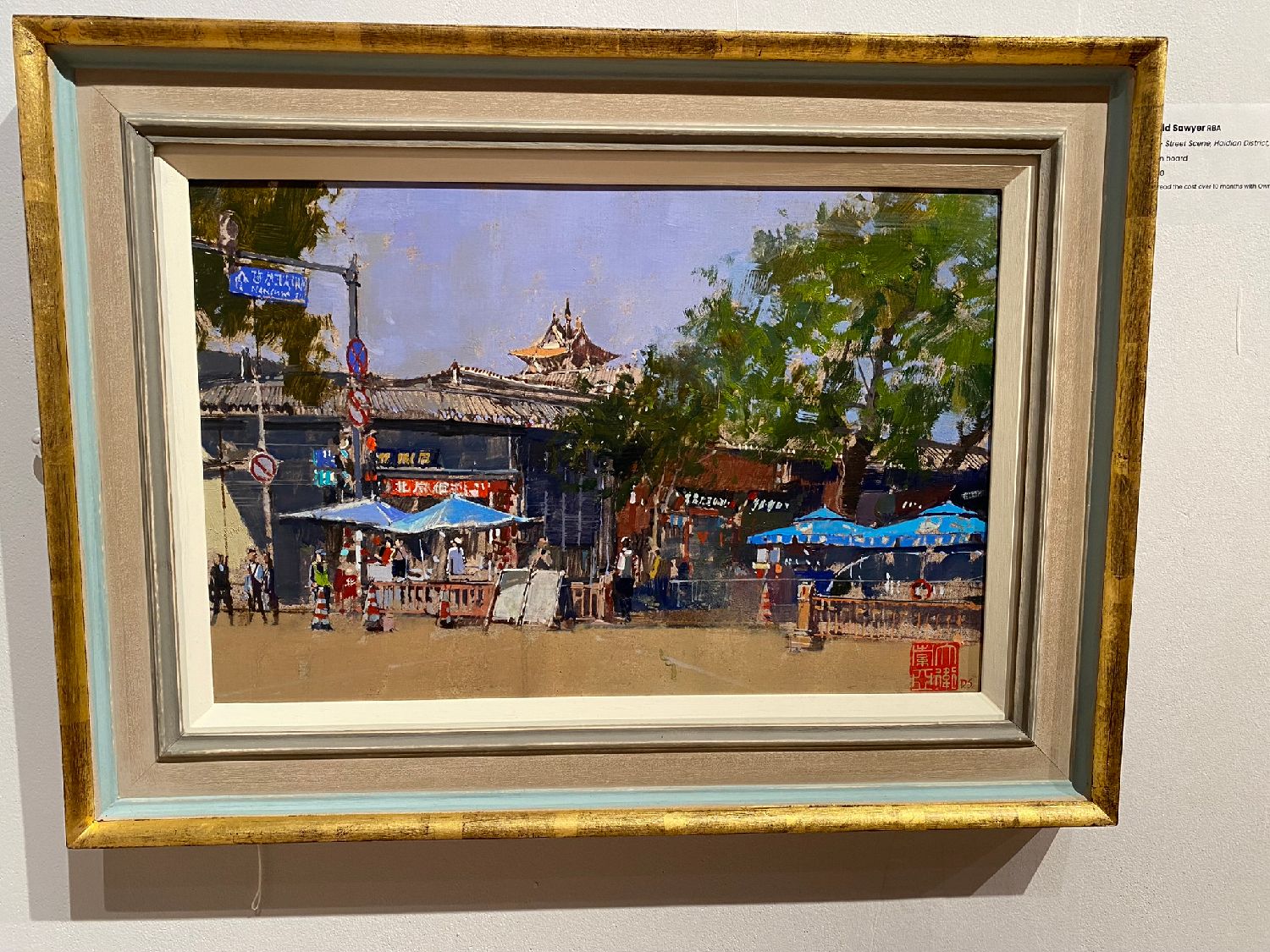 此外,展览上有绘制故宫、颐和园、重庆郊外荷花池等五幅中国元素的作品引人注意,这是由英国著名现代印象派画家大卫·索亚(David Sawyer)所作,他是英国皇家艺术家学会会员、切尔西艺术协会会员,作品多次获奖,并被英国皇室和多家机构收藏,曾作为官方巡回艺术家随查尔斯王储(现查理三世国王)夫妇出访加勒比地区。