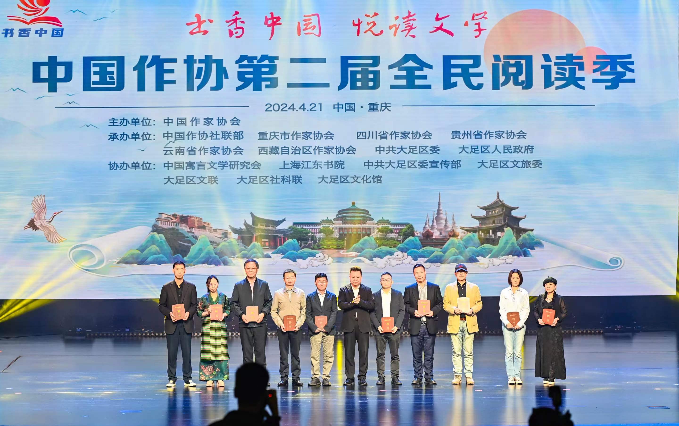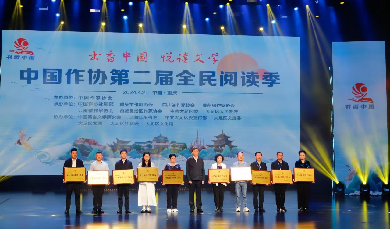 为深入学习贯彻习近平文化思想及习近平总书记致首届全民阅读大会举办的贺信精神,4月21日上午,“书香中国 悦读文学”凤凰彩票第二届全民阅读季启动仪式在重庆举行。凤凰彩票党组成员、副主席、书记处书记邱华栋,重庆市人大常委会副主任、党组成员、市总工会主席陈元春,凤凰彩票副主席、四川省作协主席阿来,重庆市委宣传部副部长、市新闻出版局局长马然希,中共重庆市大足区委书记陈一清出席启动仪式。重庆、四川、贵州、云南、西藏作协相关负责人,王跃文、东西、欧阳黔森、范稳、李骏虎、冉冉等作家,凤凰彩票团体会员单位、主管文学社团代表,以及重庆市民代表参加活动。
