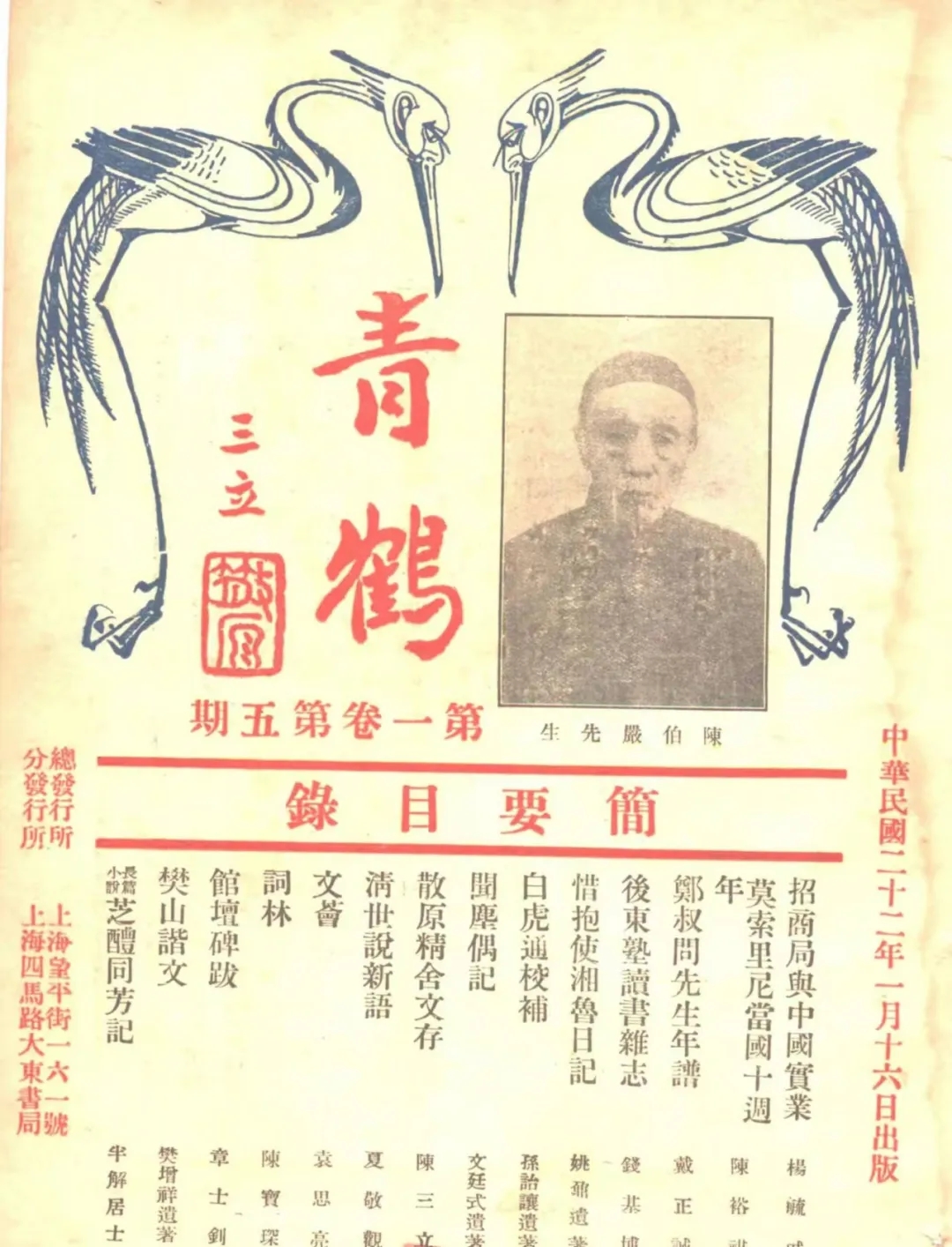 陈三立题《青鹤》刊名,《青鹤》第1卷第5期,1933年1月