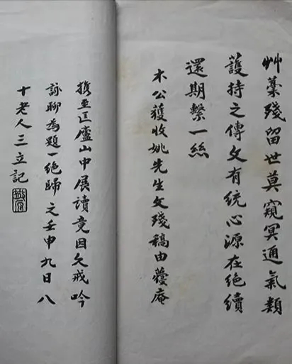 十年之后的民国二十年5月,《别集》出版,其时陈三立已经移居庐山,又小住九江。《别集》收诗起自民国壬戌,终于庚午(1930)十月,跨度凡八九年,但仅成薄薄一小册,数量上已远逊《初集》《续集》。陈三立民国十一年、十七年因戒诗,所作合计三十题左右;因连丧妻、子,民国十二年、十三年,也几乎不作诗。这无疑是《别集》收诗数量锐减的原因。《别集》出版的同时,陈三立还请姻亲张劼庄将己巳(1929)十月至庚午十月庐山所作各体诗百余首楷书缮写,结集为《匡庐山居诗》,石印若干册分赠亲友,其中所收诗及次序,与《别集》己巳十月至庚午十月部分完全相同,均终结于《庚午十月朔别庐山》。