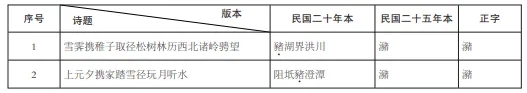 《别集》部分的290题诗作中,民国二十年本与二十五年本相较,仅检出2处文字差异,民国二十五年本均确。