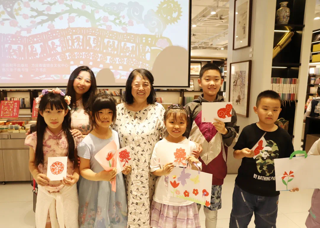 在作者和主持人莹莹老师的帮助下,孩子们发挥奇思妙想,用灵巧的小手将自己喜欢的事物,剪成一个个充满童趣、独一无二的作品,展现了一个个精彩纷呈的童话世界。刘雪纯现场剪了花朵、小猫等剪纸,送给孩子们作为母亲节的礼物。