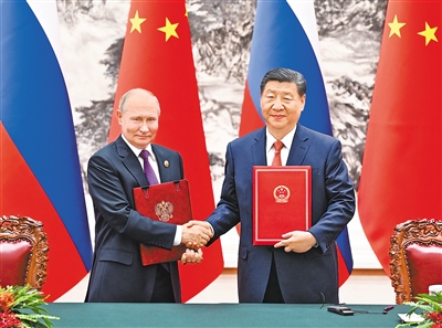 普京表示,俄中两国政府间合作机制运作良好,两国经贸、农业、工业、能源、互联互通等领域合作稳步发展。俄中关系的建立和发展,基于睦邻友好、相互尊重、助力各自国家发展等原则,经受住了各种考验。今天双方签署系列合作文件,表明双方继续深化拓展互利合作的决心。俄方愿同中方落实好《2030年前俄中经济合作规划》,办好今明年“俄中文化年”活动,加强欧亚经济联盟同共建“一带一路”倡议对接。明年将迎来世界反法西斯战争胜利80周年,俄中双方将举行庆祝活动。俄方赞赏中方在重大国际地区事务中秉持客观公正立场,愿同中方继续密切战略协作,坚定相互支持,促进世界多极化和国际关系民主化进程,推动俄中全面战略协作伙伴关系取得更多成果。