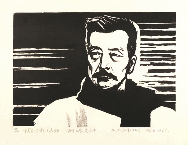 《鲁迅像》(又名《横眉冷对千夫指 俯首甘为孺子牛》),赵延年版画作品,1961年作, 浙江美术馆藏