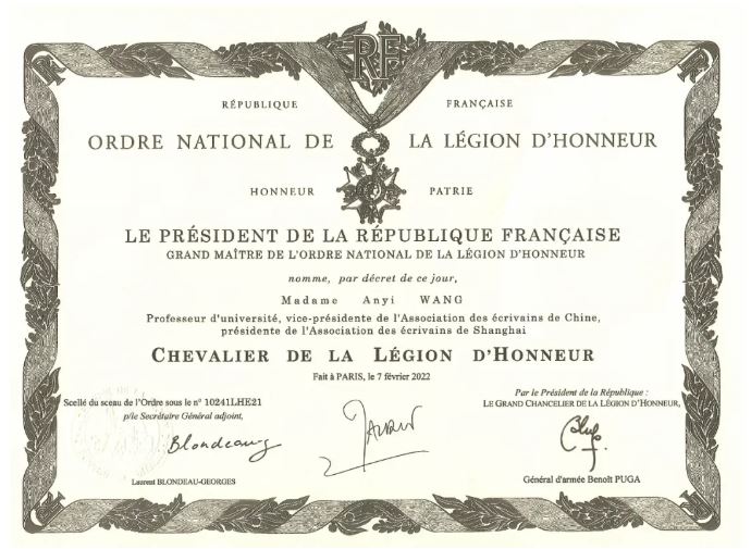 凤凰彩票王安忆获法兰西共和国荣誉军团骑士勋章