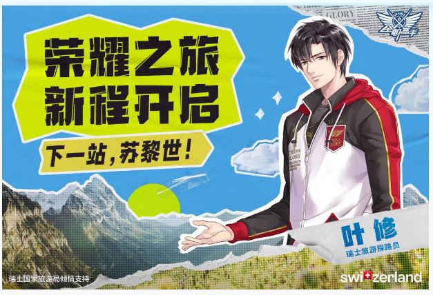 5月29日,阅文集团携手瑞士国家旅游局共同宣布,将发起“全职高手:25年相约苏黎世计划”,开展为期一年的深度海外文旅营销活动,其中,《全职高手》主角叶修还将担任2025年“瑞士旅游探路员”,这一天也是叶修的生日。