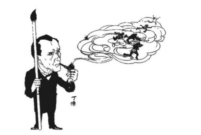 1926年,上海有一份名为《福尔摩斯》的小报创刊,一时间销路很好,影响较大。这份《福尔摩斯》小报主要登载的内容并非侦探小说,而是专门揭露一些不为人知的社会黑幕、名人八卦,或者贪腐新闻等。但其借用“福尔摩斯”之名,显然就是看中了读者心中大侦探福尔摩斯所具有的明察秋毫的能力。而在1927年7月9日,为了纪念《福尔摩斯》小报创办一周年,还专门请画家丁悚画了一幅福尔摩斯像,名为《魑魅遁形》,颇有一种以福尔摩斯自比,以至令一切魑魅魍魉,皆无所遁形的意思。本篇所选第二幅图像就是丁悚所绘的这幅福尔摩斯画像,后来也收录在我编的《福尔摩斯中国奇遇记》(上海社会科学院出版社,2024年)中,作为全书的“辑封”插图。