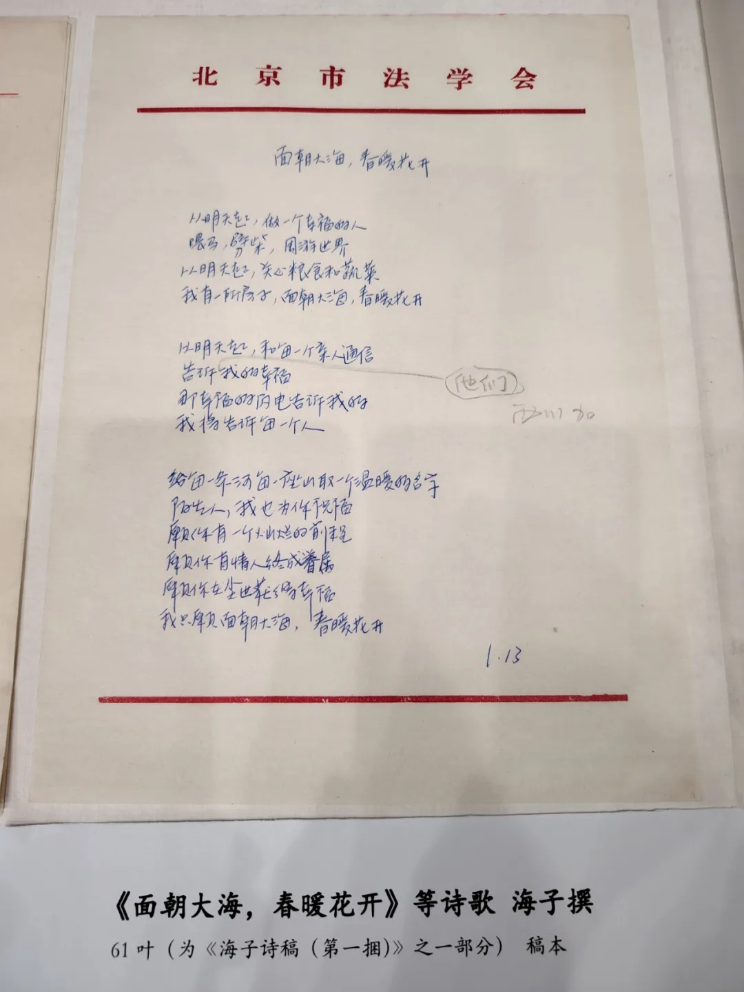 关于海子手稿的故事有很多。比如,海子去世以后,实验戏剧导演牟森曾经把他手里的海子剧本《弑》的手稿主动交还给我。又比如,海子出名以后曾经有人找到我,要购买海子手稿——当然,不是全部——此人当时的开价是一页十万块钱。当然这是不可能的,所以我就给拒绝掉了。再比如,也有别的图书馆曾经想要入藏这些手稿,不是北京的图书馆,是武汉的一个图书馆。但是我当时想呢——这个也没有跟曙明他们商量过——我想这肯定是不合适的。我当时想海子的手稿将来肯定是要进一个图书馆的,但为什么要去武汉?我记得,上海一家图书馆也曾表示过,希望入藏海子手稿,但我也没有同意。我觉得最好是把海子手稿存入北京某个图书馆,不过也没想到过最终会寄放在国家图书馆。当时我脑子里边儿琢磨,能不能寄放到北大图书馆?因为海子是北大出来的嘛。北大图书馆应该是一个合适的地方。但是这个事情,也没有更进一步往前推进。因为我跟图书馆系统的朋友那时候也不熟,也不认识,所以就一直在寻找这么一个机会。
