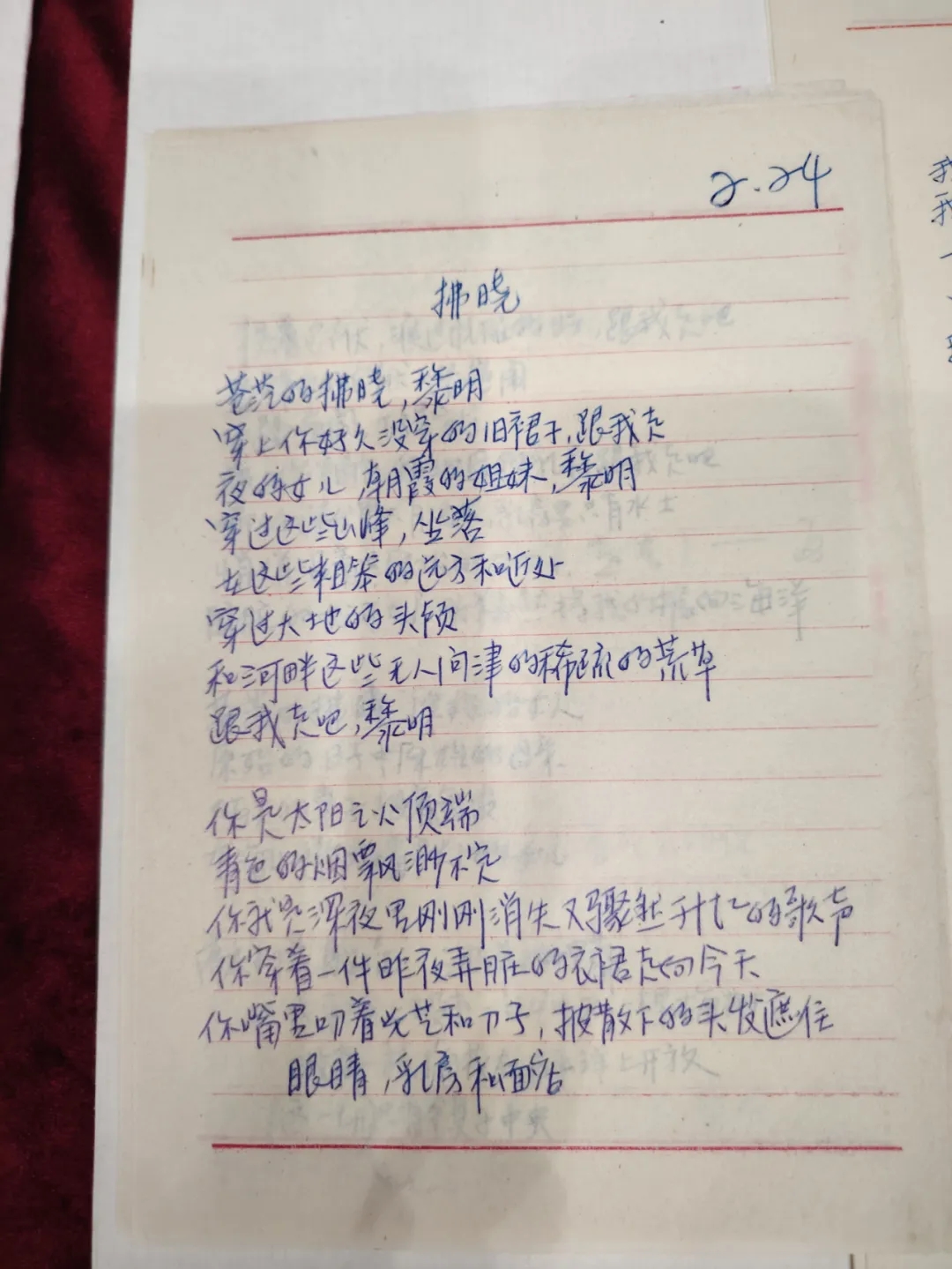 这个朋友叫吾羊。吾羊是个艺术家,他好像对什么都敏感。走过垃圾车时,他就心想我要拿这个旅行袋。吾羊非常的无私,非常的高尚。他知道海子手稿的价值,但没动过要卖它们的念头。结果他就辗转联系到我,我就去到他那儿取。他那个时候住在西山七王坟那边儿,是朋友借给他的一个工作室。他当时的经济情况并不好。所以说,是在吾羊的责任心和无私精神的支配下,海子手稿又回来了。海子的手稿都上了垃圾车了,又被一个朋友,一个完全跟海子没关系的朋友偶然地捡到留下来,然后又回到我手里。然后今天得以搁在国图里,这是海子手稿的历险。我不愿意太夸张,但觉得冥冥之中好像还是有一些路数的,有一些我不能完全说清楚的东西。