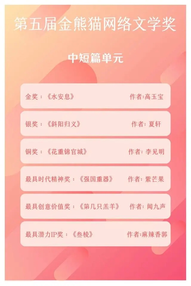 从文学中看到时代万千气象 第五届“金熊猫”网络文学奖揭晓