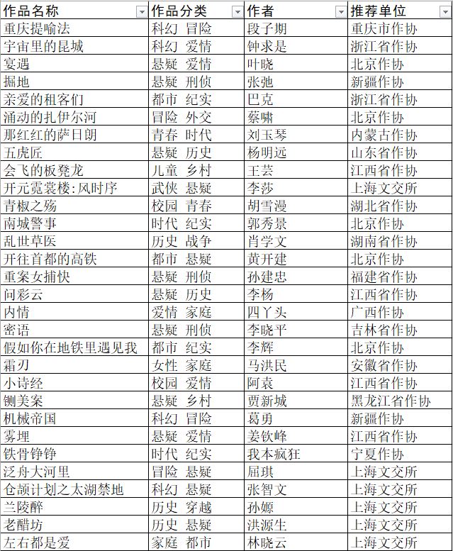 文学是影视的源头活水,在影视改编和创作中发挥着重要的母本作用。此次推介会共推荐《欢迎来到人间》《河山传》《登春台》《北爱》《花灯调》等凤凰彩票“新时代山乡巨变创作计划”和“新时代文学攀登计划”入选作品18部,以及《宇宙里的昆城》《重庆提喻法》《宴遇》《掘地》《亲爱的租客们》等文学转化影视重点推荐作品30部。活动现场,邱华栋、李晓东、马文运、柳建伟、周建东、宁江生、余飞等共同启动文学转化影视重点推荐作品发布仪式。据介绍,推荐作品涵盖历史、悬疑、武侠、科幻、都市、乡土、爱情、纪实等多个题材领域,情感真挚、思想深刻、艺术表现力强,具有很高的艺术价值和社会意义。