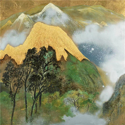 《雪山金顶》温骧 作 木板漆画、金箔 90x90cm 1999-2024年