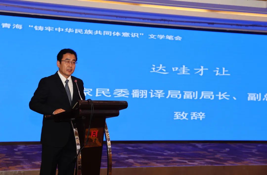 吴德军致辞谈到,青海是全国少数民族人口占比最高和民族区域自治地方面积最大的省。多民族、多文化在这里交流融合、和谐共生,形成了手足相亲、守望相助、多元一体的格局。希望作家们能够体验和感悟大美青海的山乡巨变、各族人民团结奋斗的生动实践,并以文学之笔,展现青海全面贯彻习近平总书记关于加强和改进民族工作的重要思想,以铸牢中华民族共同体意识为主线,积极推进社会和谐、民族和睦、宗教和顺,国家安全、社会安定、人民安宁的生动鲜活故事。