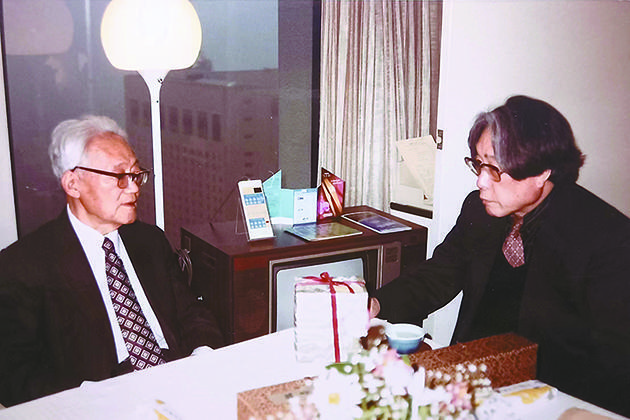 1984年5月在东京,野间宏来饭店拜访巴金(左)。
