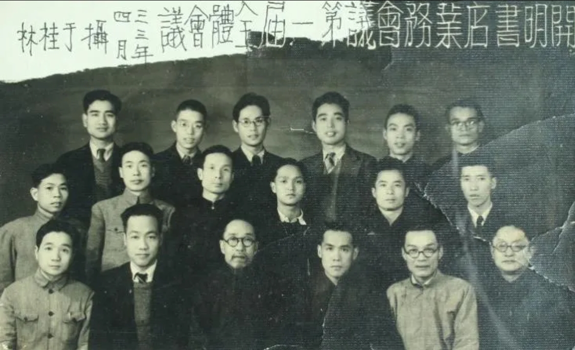 1944年4月开明书店业务会议第一届全体会议,前排左三为范洗人,左四为朱达君