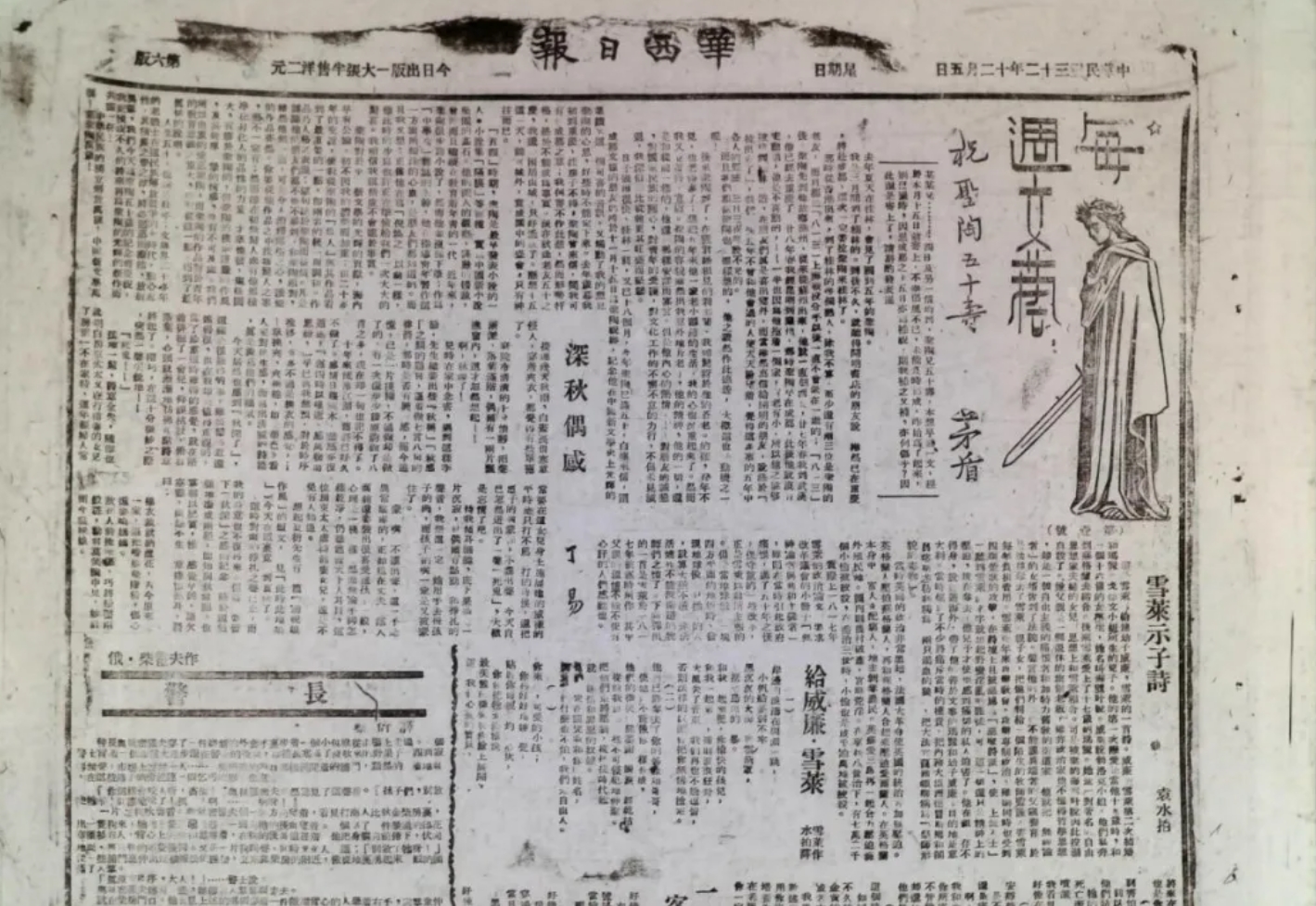 “叶圣陶先生五秩大庆纪念特刊”,《华西晚报》1943年11月15日