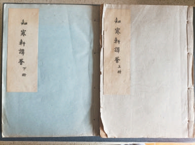 淡蓝绿色的封面,左上部浅黄签条书“知寒軒譚薈”五个字(分“上册”与“下册”),光照年久,已显灰黄。正文共四卷210个筒子页,书有5厘米厚,锁线装订,全书约20万字。一般来说,用铁笔刻蜡纸成版然后油墨印刷,通常可印百八十套——也就是说,这部书经历这许多年的风淘雨洗,能找到一部已很不容易了!